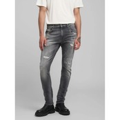 レギュラーライズ、ややドロップクロッチ、膝から裾にかけてテーパードするスリムフィットジーンズ。