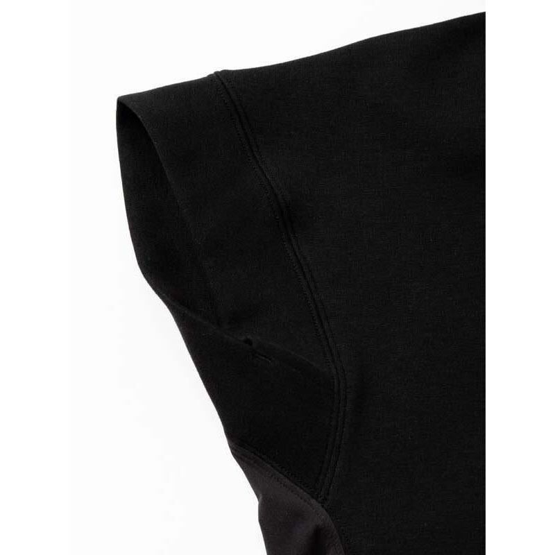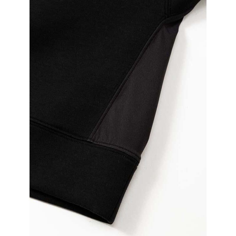前後で素材が異なり遊び心を感じさせるデザインの半袖フーディ。前面はハリ感のあるストレッチの効いた素材。前面中央には立体感のあるロゴ、左胸には特徴的なハートのロゴを採用。