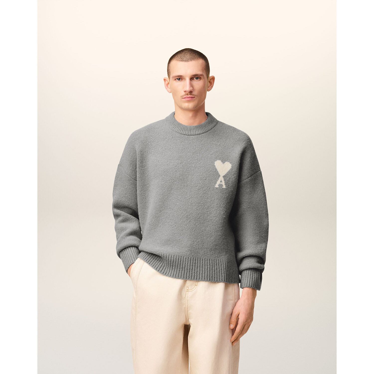 AMI PARIS (アミパリス)-Grey Alpaca Ami De Coeur Crewneck Sweater-