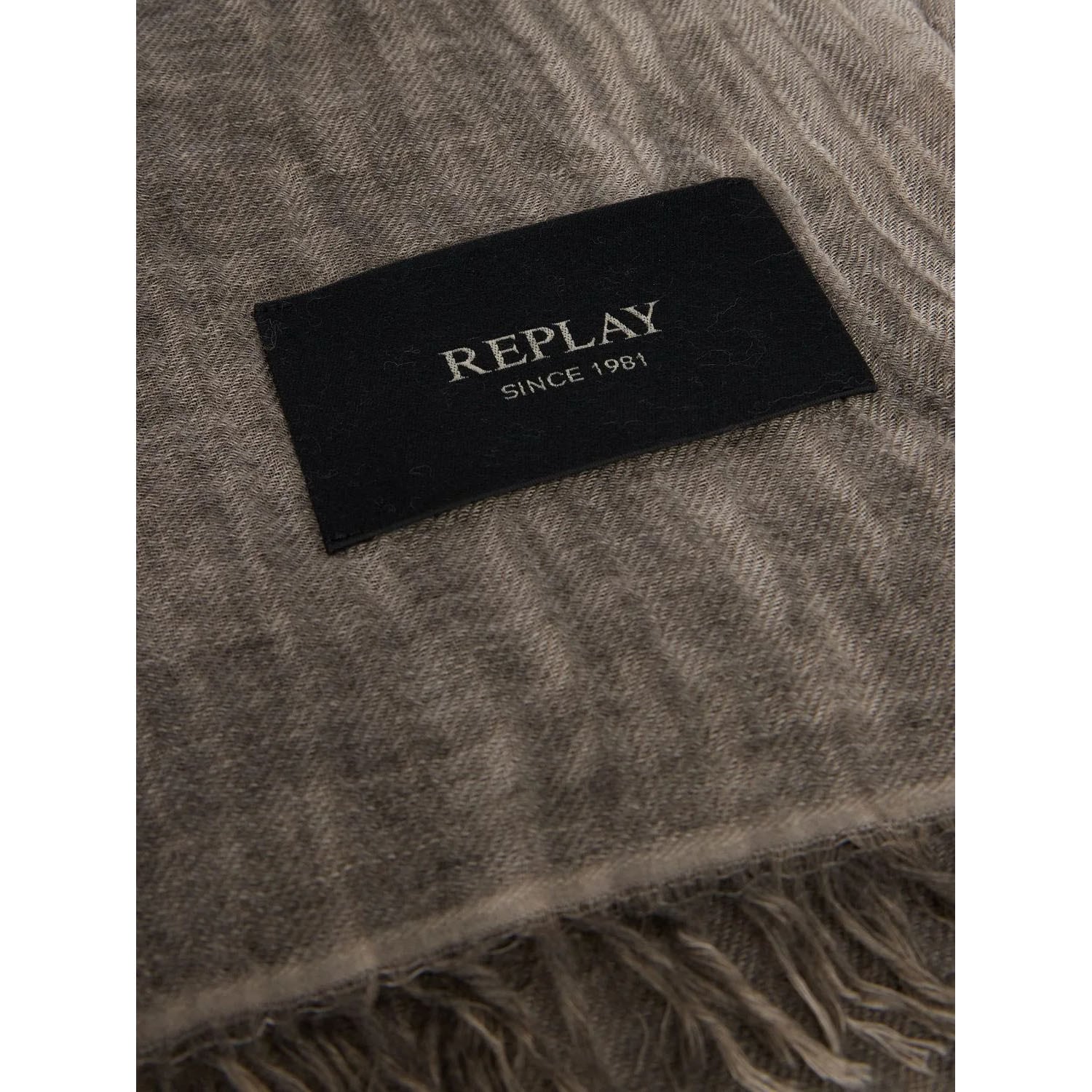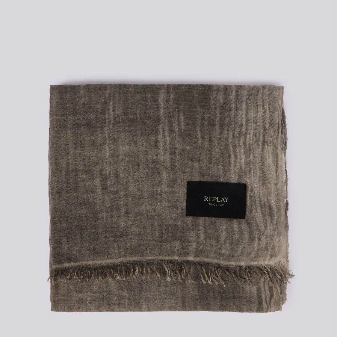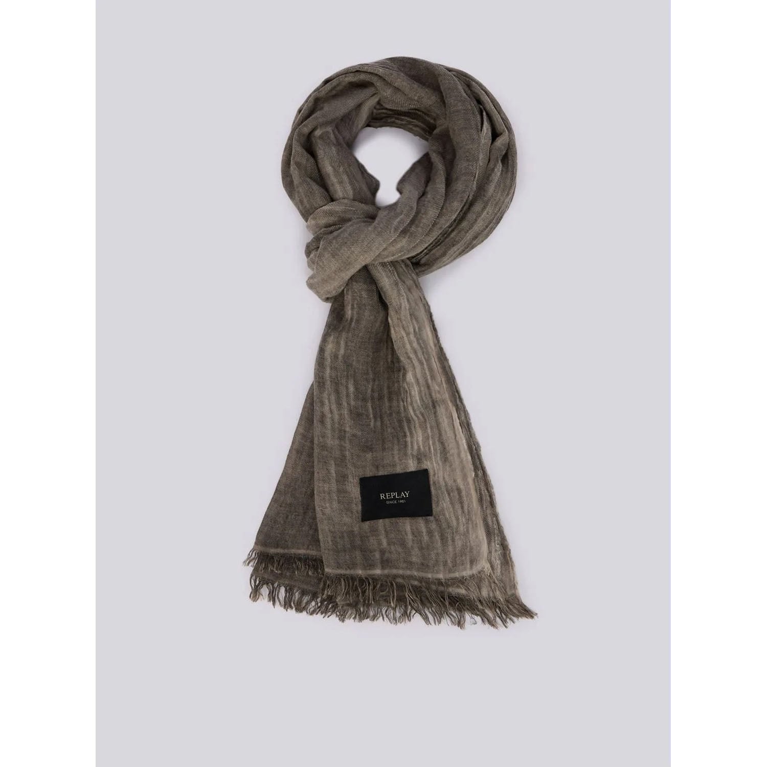 独特の色褪せた風合いの柔らかいウール混紡糸で作られたスカーフ。このアクセサリーは、ほつれた縁と対照的な Replay ロゴ パッチが特徴です。