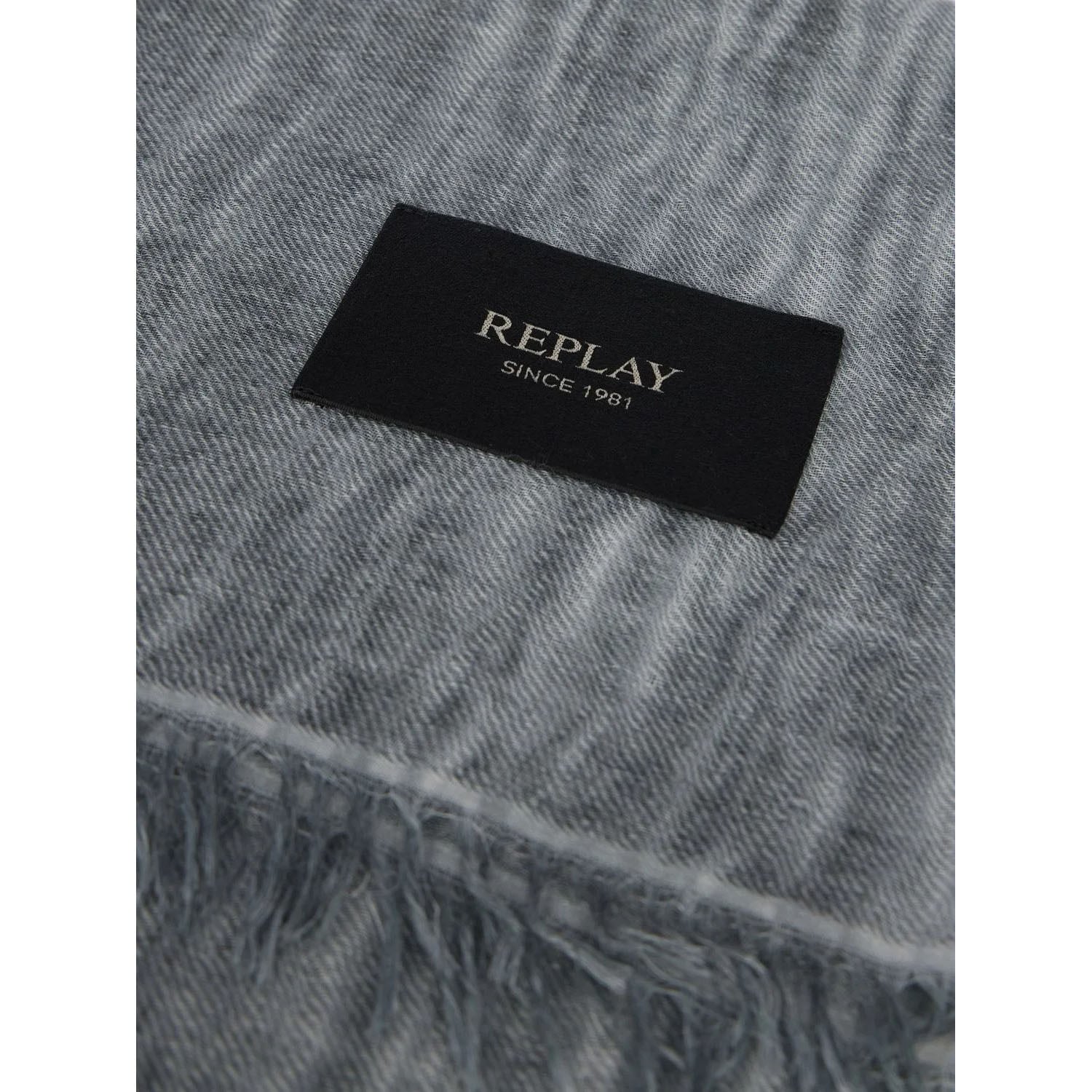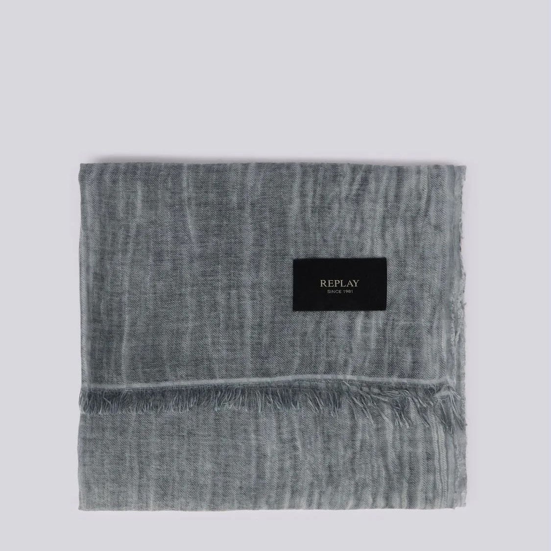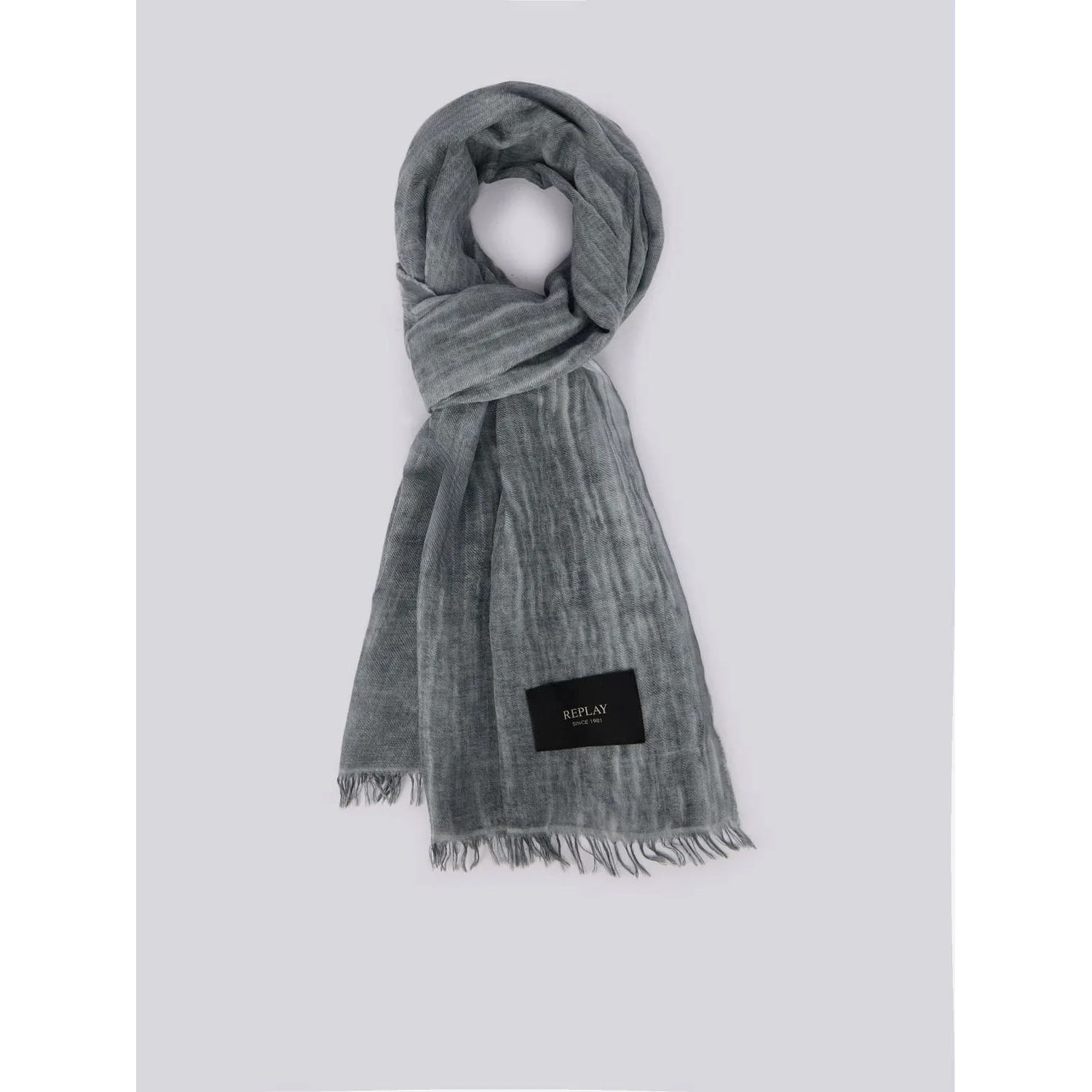 独特の色褪せた風合いの柔らかいウール混紡糸で作られたスカーフ。このアクセサリーは、ほつれた縁と対照的な Replay ロゴ パッチが特徴です。