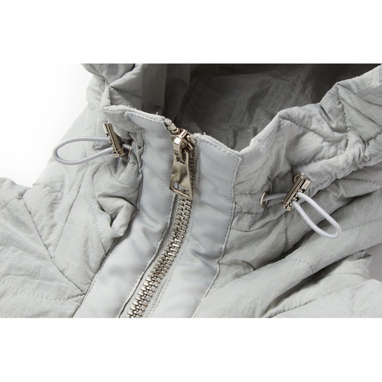 中綿入りキルティングボディとニットスリーブを組み合わせた、機能性とスタイルを両立させたコンビネーションブルゾン。フロントのキルティングが防寒性を確保しながら、ニット素材の袖が軽やかな動きやすさを実現。すっきりとしたシルエット設計により、スタイリッシュな着こなしが可能です。フーデッドデザインがカジュアルな印象を添え、デイリーユースからアクティブなシーンまで幅広く対応します。