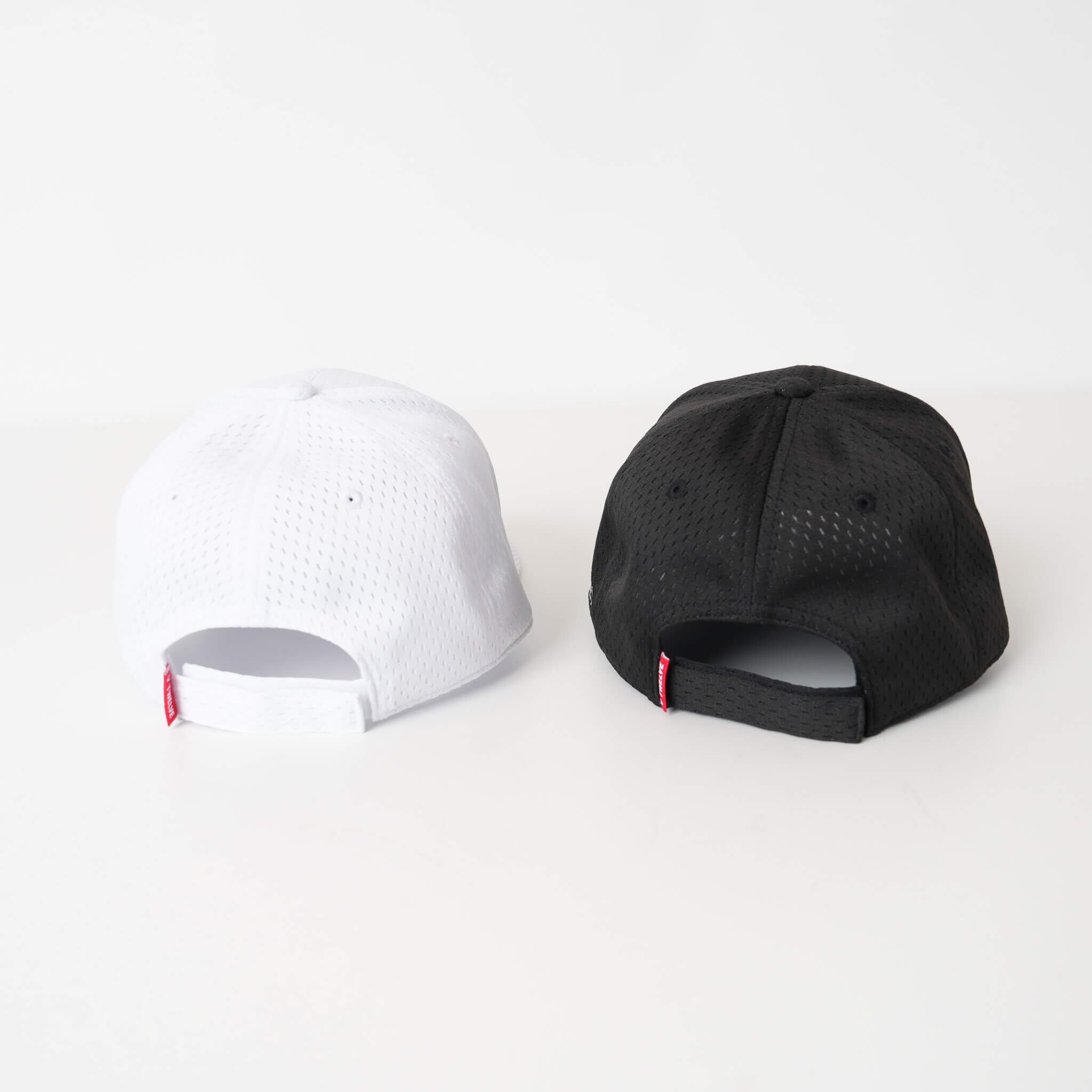 コントラストロゴのワッペンを配置したシンプルなメッシュキャップ。
