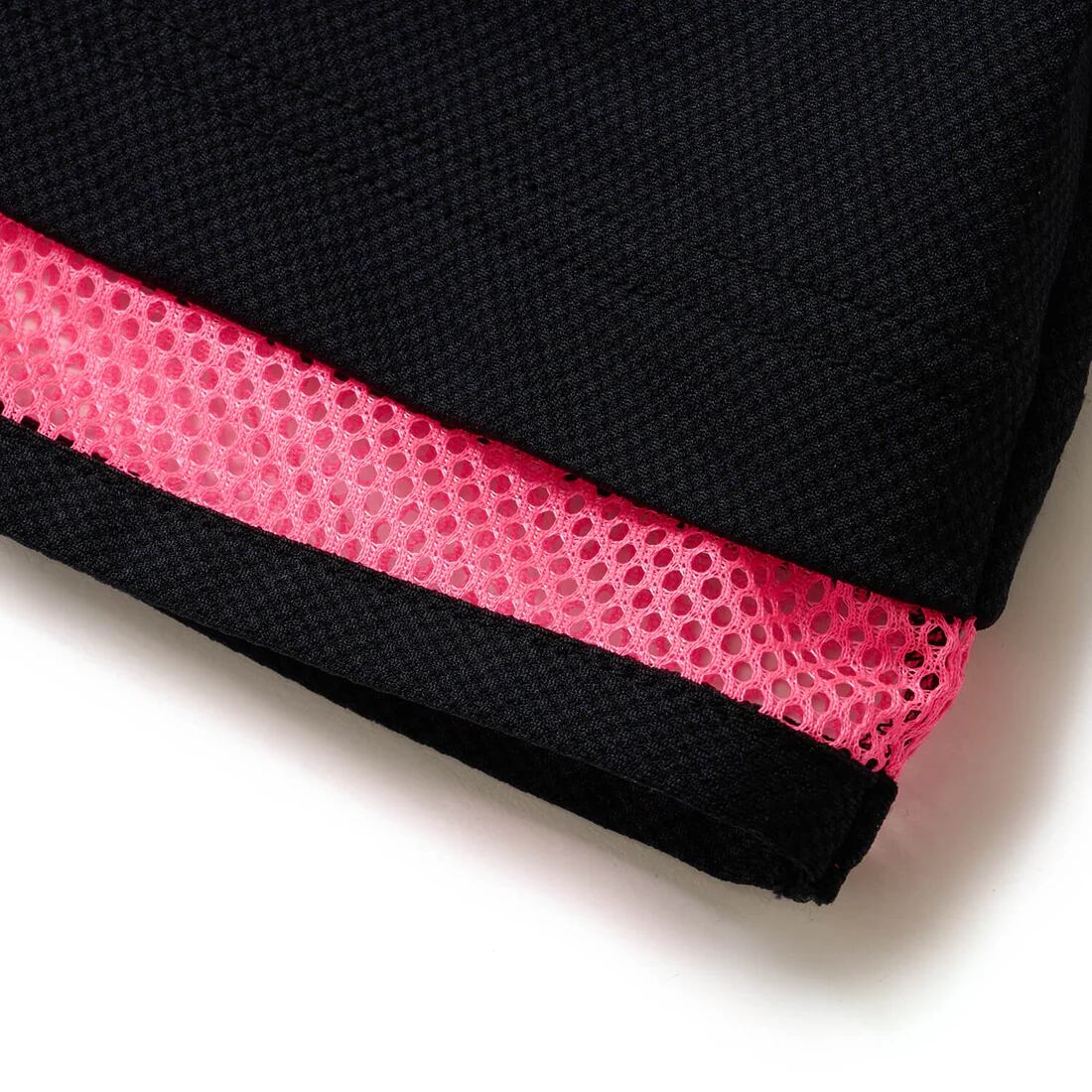 レイヤード風のネオンカラーメッシュがコーディネートのアクセントに。